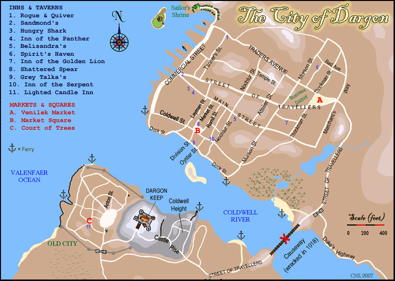 - An overview of the layout of the city of Dargon, with major streets and landmarks.
