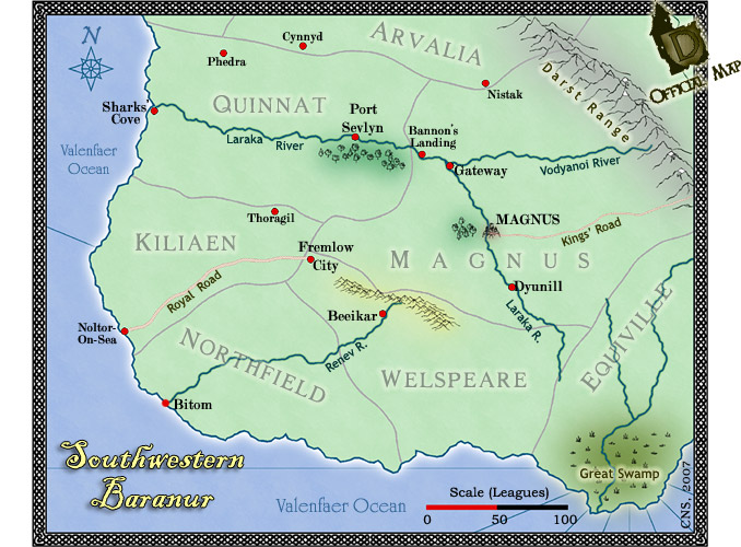 - Depicts Magnus, the capital of the Kingdom of Baranur, as well as the watershed and cities of the great Laraka River.